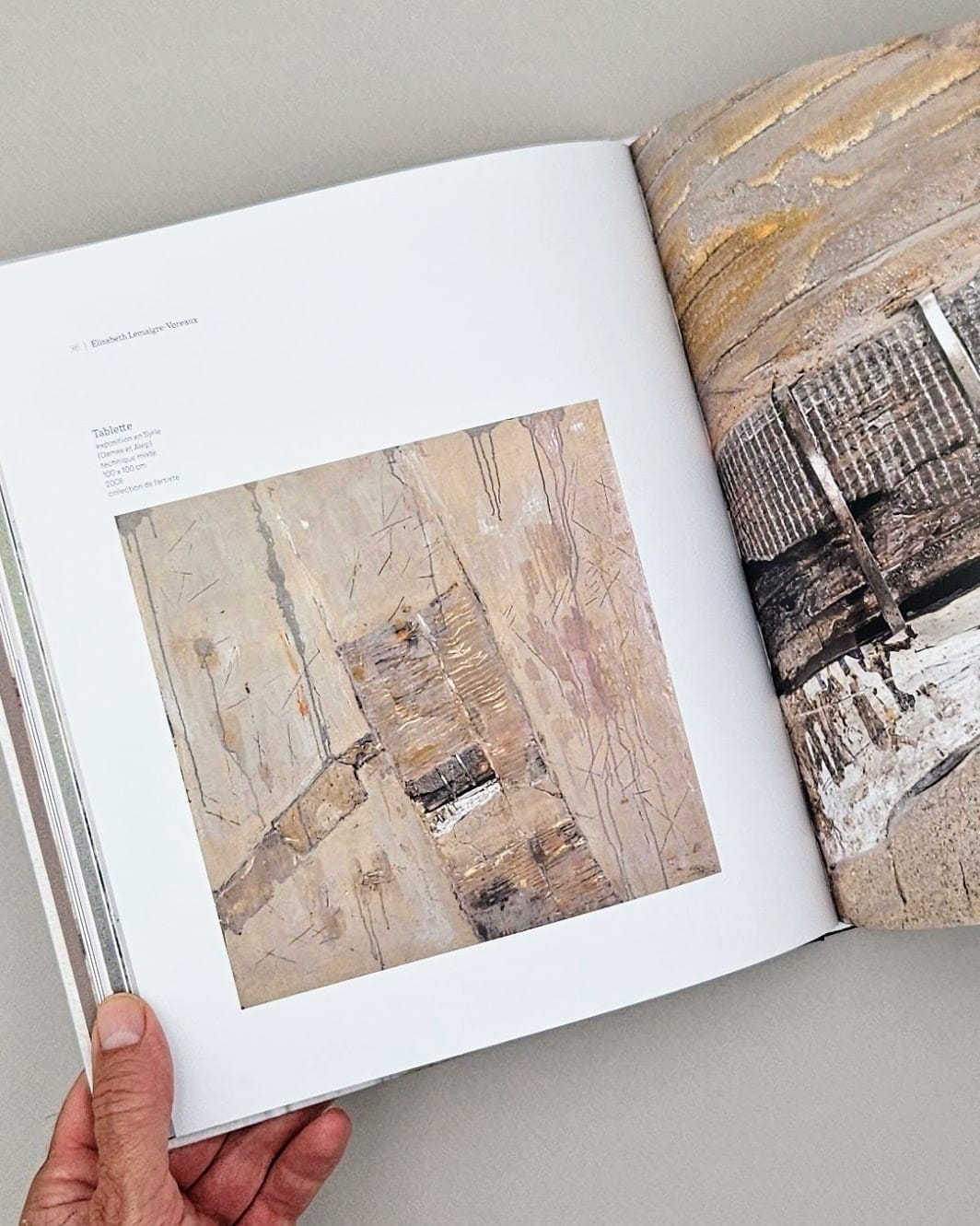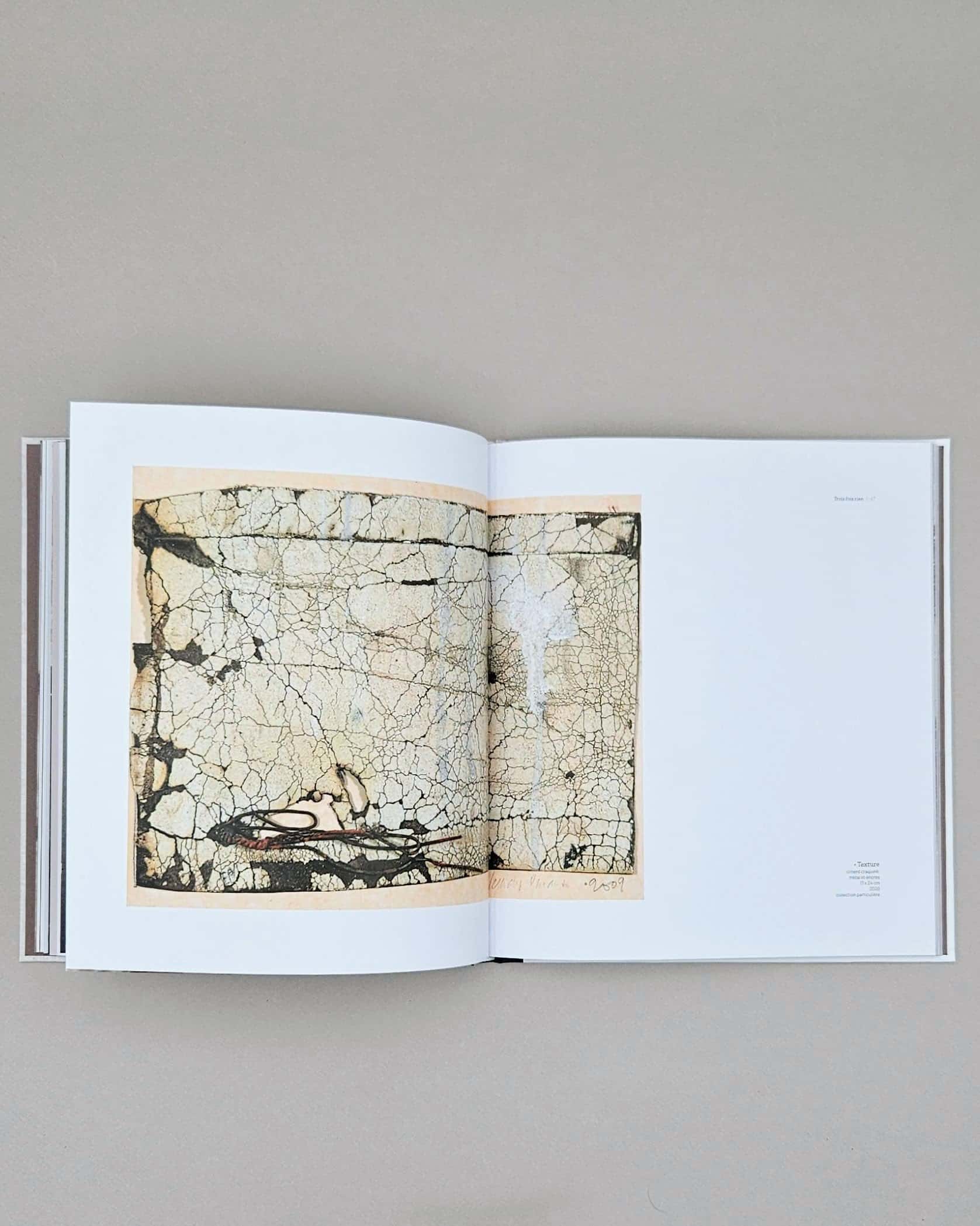 « Une poignée de terre, quelques pierres, des pigments » – trois fois rien. Pourtant, entre les mains d’Élisabeth Lemaigre-Voreaux, ces rebuts deviennent monde. Dans ce geste qui transforme le déchet en relique, le fragment en mémoire vivante, se révèle une artiste qui dialogue avec les matières les plus humbles. Cette monographie nous invite à découvrir une œuvre où chaque grain de sable raconte le désert, où chaque fibre de tissu murmure l’intime.