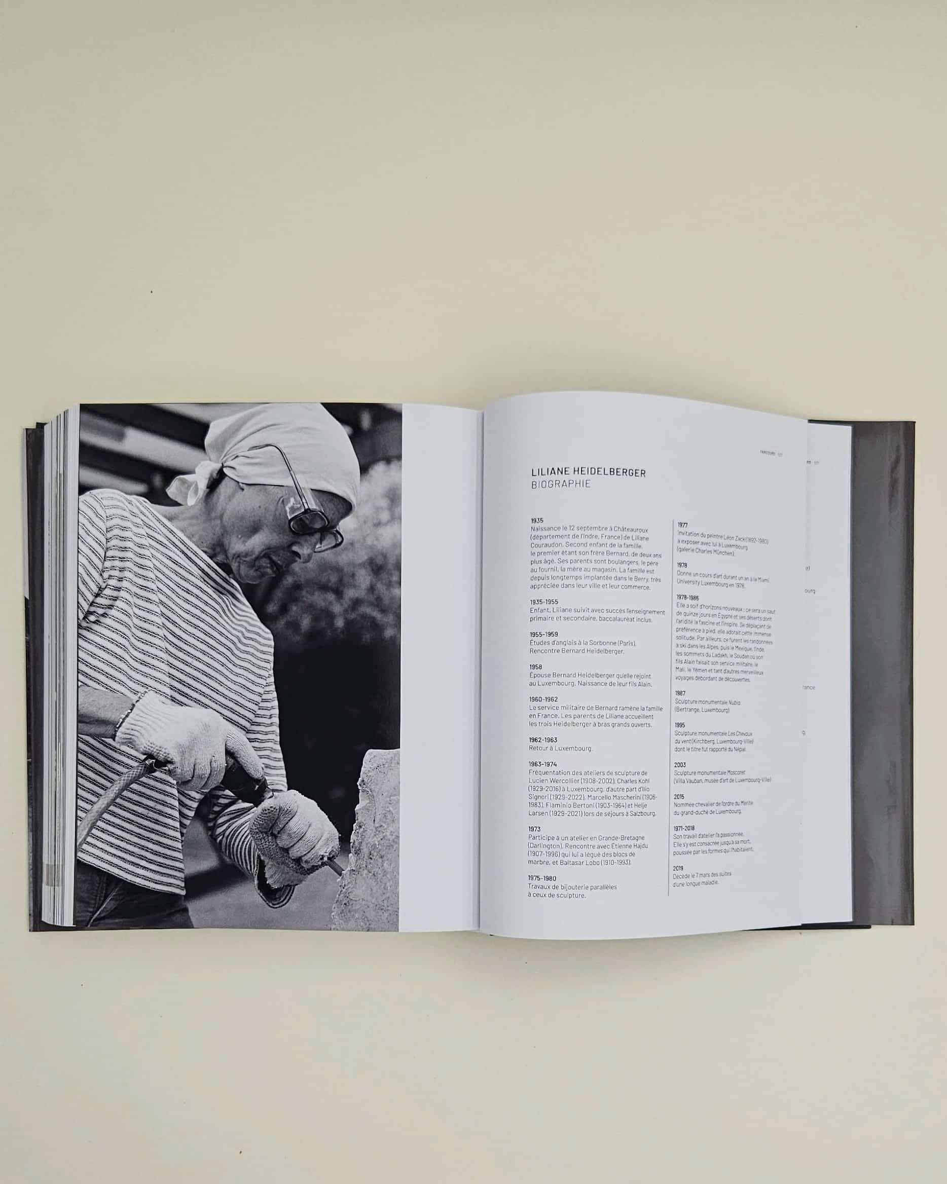 « Elle craignait que le verbe n’enferme le regardeur dans le cercle tracé par la domination d’un mot », écrit Bernard Heidelberger de son épouse sculpteure. Dans cette méfiance à l’égard des mots qui enferment se révèle toute la philosophie de Liliane Heidelberger : « laisser parler la pierre » plutôt que de lui imposer un discours. Venue à la sculpture à vingt-sept ans, formée par Lucien Wercollier dans les ateliers luxembourgeois, elle développe une approche où chaque matériau dicte sa propre évolution. Cette publication révèle, à travers plus de quatre cents œuvres cataloguées, comment cette écoute patiente de la matière a donné naissance à une démarche sculpturale d’une grande cohérence.