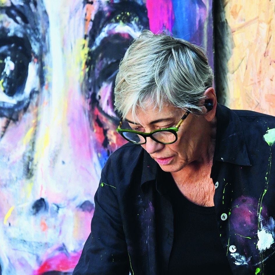 L’artiste. « Nadine Vergues, artiste accomplie, a trouvé sa matière : le feutre industriel. Elle a élaboré sa technique de création à partir des contraintes de son matériau, souple et rêche. Cela donne une interprétation cubiste de visages aux couleurs facétieuses. Elle habite et habille son travail de pigments riches. Des êtres expressifs aux regards puissants fusent à travers la fibre. » Patrick François